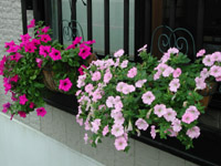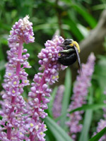 なんという名前の花でしょう・・・花バチさんがやってきます。
