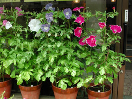 村上さんのお庭拝見 7月30日 昭和通りに、いつもお店の前が、 季節のお花で飾られた 美容室がありました。 そんな素敵な美容室は、いつか 行きつけのお店になっていました。 ご夫婦お二人で、丹精込めて育てていらっしゃる、たくさんのお花たち。 毎日の水遣りと花柄摘みだけでも、何時間もかかるとか・・・。 お店の裏には、またまた、たくさんのお花が咲いていて、作業の合間には ログハウスでちょっと一服 されるのだそうです(^^) |