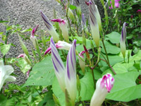 今日も、もうすでに気温は30℃を超えています。 朝顔さんはちょっと暑そうです。 もっと朝早くに撮影にお邪魔するべきでした(^^; |