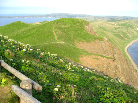 すれちがう人もほんの数人で、風の音しか聞こえない花咲く岬は別世界でした。。。