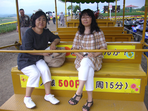 トラクターが引っ張っているノロッコ号にて花畑一周♪