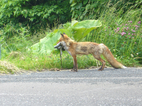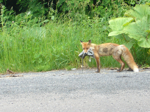 なかなか草むらに消えないで、獲物を見せびらかして!?ます〜〜〜(^^;