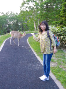たいていエゾシカさんは、ひとがいると逃げてしまうのに、なぜか逃げない・・・。。。