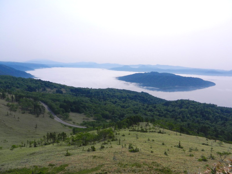 反対側には、ちょっとかすんだ屈斜路湖が☆