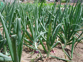 | キッチンガーデン 白玉ねぎと赤玉ねぎが今年は一段と良く育ちました。 |